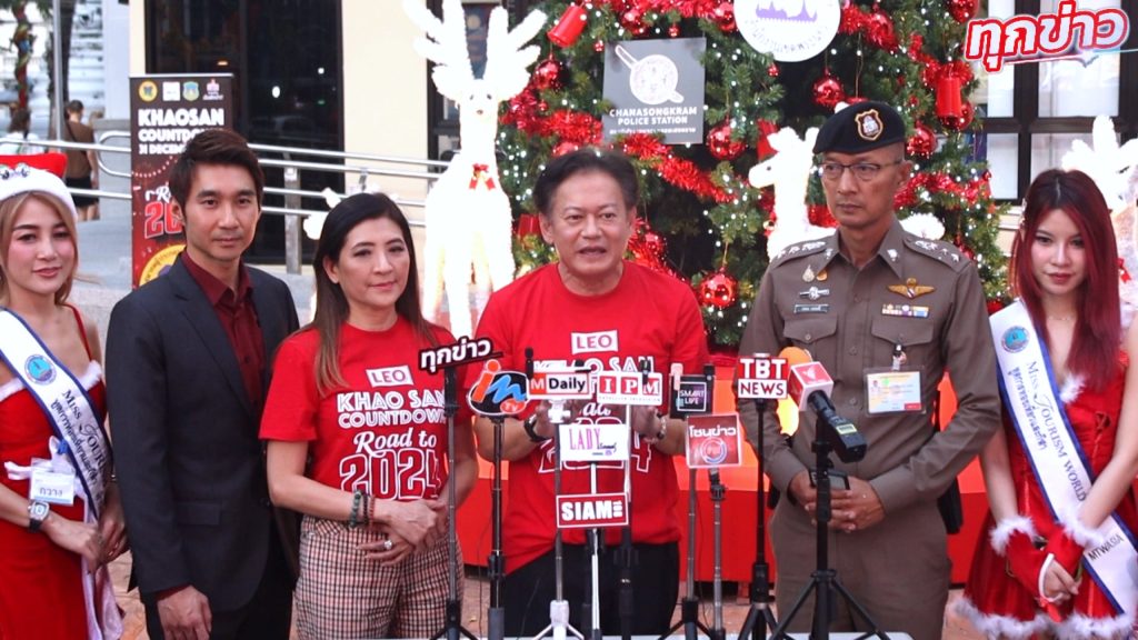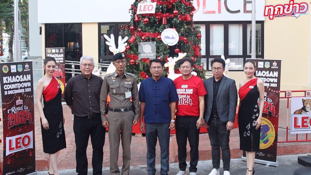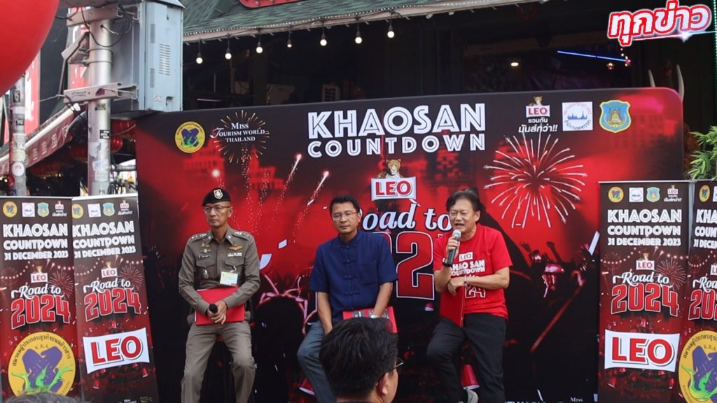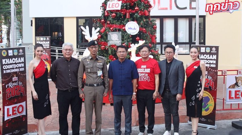 ในการนี้ผู้ประกอบการถนนข้าวสารร่วมกับ LEO โดยนายสง่า เรืองวัฒนกุล นายกสมาคมผู้ประกอบธุรกิจถนนข้าวสาร แถลงข่าวการจัดงานเคาท์ดาวน์ “LEO ROAD TO 2024 KHAOSAN ” อย่างเป็นทางการร่วมกับ, นายโกศล สิงหนาท ผู้อำนวยการสำนักงานเขตพระนคร, พ.ต.อ.สนอง แสงมณี ผู้กำกับสถานีตำรวจชนะสงคราม และ นส.เบญจา กัลยาวินัย กรรมการผู้อำนวยการ บริษัท เมตาเวิร์ล (เอเชีย)จำกัด ผู้ถือสิทธิการประกวด Miss Tourism World Thailand ทูตการท่องเที่ยวและทูตการกีฬา เพื่อส่งเสริมการท่องเที่ยวการสร้างความเป็นเอกลักษณ์ สนุกสนานพร้อมประชาสัมพันธ์ให้นักท่องเที่ยวได้มีประสบการณ์ที่สร้างสรรค์แตกต่าง และเพื่อกระตุ้นให้นักท่องเที่ยวมาเที่ยวถนนข้าวสาร เพราะถนนข้าวสาร เป็นถนนที่ทั่วโลกรู้จัก เป็นศูนย์กลางการค้าขายและเศรษฐกิจ ขนาดย่อม ที่สามารถสร้างชื่อเสียงให้ประเทศไทยมาช้านานจนเกิดนักท่องเที่ยวที่หลากหลายทั้งภายในประเทศและต่างประเทศและเพื่อให้ เป็นกิจกรรมที่เป็นส่วนหนึ่งที่จะให้เป็นไปตามแผนดำเนินการงานที่ทำให้นักท่องเที่ยวชาวต่างชาติ 10 ล้านคนเดินทางมาเที่ยวถนนข้าวสาร ในปี 2024