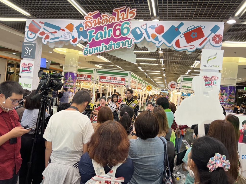 เปิดตลาดวันแรก ออเจ้าก็ทำเอาตลาดแตกเลยจ้า เหล่าแฟนคลับยกขบวนมาให้กำลังใจ รอน AF5 – ภัทรภณ โตอุ่น ในบท “เพิ่ม” และ จ๊ะจ๋า – แดนดาว ยมาภัย ในบท “อึ่ง” คู่ชิปจากซีรีส์ฮิตติดเทรนด์พรหมลิขิต ที่ขอข้ามยุคมาบุกตลาดสร้างสีสันในงาน ลิ้นติดโปรแฟร์’66 ของคู่ซี้ ก้อง-ท็อป ที่จัดหนัก จัดใหญ่ ส่งท้ายปลายปี คึกคัก ช้อป ชิม อร่อยฟิน!! ทุกโซน ตั้งแต่วันนี้ถึง 17 ธันวาคมนี้ @ฟิวเจอร์พาร์ค รังสิต ชั้น B