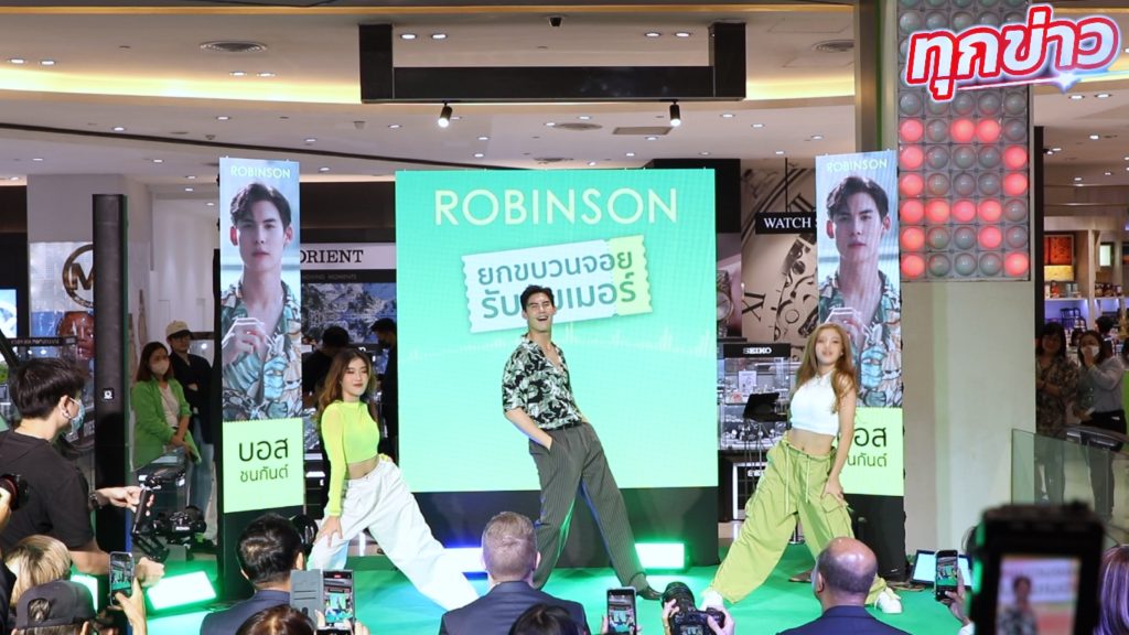 ประเดิมคิกออฟแคมเปญฯ แบบมันส์เกินต้าน! ในวันเสาร์ที่ 18 มี.ค. 66 ตั้งแต่เวลา 15.00 น. เป็นต้นไป กับอีเว้นท์สุดสนุก ที่ห้างโรบินสัน พระราม 9 โดยมีสองบอสแห่งห้างโรบินสัน สเตฟาน จูเบิร์ท ผู้ช่วยกรรมการผู้จัดการใหญ่อาวุโส ฝ่ายสื่อสารการตลาด และนพดล พลายระหาญ ผู้ช่วยกรรมการผู้จัดการใหญ่ ฝ่ายการตลาด บริษัท โรบินสัน จำกัด (มหาชน) นำทีมนักแสดงหนุ่มหล่อดาว TIKTOK สายแดนซ์ บอส – ชนกันต์ พูนศิริวงศ์ ร่วมเปิดตัวซิงเกิลสุดพิเศษ “โรบินสันหลงรักพักร้อน ที่หนุ่มบอสได้ร่วมครีเอตการร้องและท่าเต้นมาโชว์กันสด ๆ เป็นที่แรก!