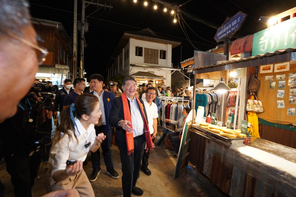 อีกทั้งมีกิจกรรมให้นักท่องเที่ยวร่วมถ่ายภาพ ณ จุด Landmark เช็คอินพร้อมแชร์ผ่านช่องทางสื่อโซเซียลมีเดีย เพื่อรับคูปองชวนช้อป 50 บาททันที จาก DIT GO เมื่อมาเที่ยวตลาดต้องชมทั่วประเทศ ถึงวันที่ 7 มกราคม 2567 กระตุ้นเศรษฐกิจต่อเนื่องในช่วงปีใหม่ให้ประชาชน เพื่อกระตุ้นการบริโภค สร้างงาน สร้างอาชีพ และสร้างรายได้ให้กับคนในชุมชน นอกจากนี้ รองนายกรัฐมนตรีและคณะคณะผู้บริหารกระทรวงพาณิชย์ เดินเที่ยวชม ชิม ช้อป สินค้าตลาดต้องชม “ตะลอนเที่ยววิถีไทเลย ตะลุยตลาดถนนคนเดิน วิถีเชียงคาน บ้านไม้เก่าริมโขง”พร้อมผู้บริหารส่วนราชการจังหวัดเลย และผู้บริหารตลาด แวะชมนวดยองเส้น ร้านยายคำก้อย แวะชมร้านจำหน่ายสินค้าหัตถกรรมจากชุมชนเชียงคาน ณ ร้านมักเลาะ แวะชิมร้านมะพร้าวแก้วทำสด น้ำตาลมะพร้าวปั้น ณ ร้านวรรัตน์มะพร้าวแก้ว แวะเยี่ยมชมกิจกรรมการแสดงระหว่างทาง ได้แก่ โปงลาง ชุดผีขนน้ำ แวะเยี่ยมชม และลงชื่อเป็นที่ระลึกกระเป๋าผ้าฝ้ายดิบของที่ระลึกเชียงคาน แวะชิมร้านผัดไทยห่อใบบัว ณ ร้านเหลียวแล แวะชิมร้านไอติมบาหยันเสิร์ฟบนผลแคนตาลูปสดทั้งลูก แวะชิมร้านโรตีผีตาโขน @เชียงคาน แวะร้านขนมบัวลอย ร้านบัวลอยโรจน์เลย และแวะชมร้านเสื้อผ้าพื้นเมือง ร้านนิยมไทย