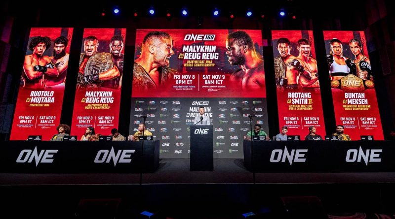 โรงแรมดับเบิ้ลยู กรุงเทพ : วัน แชมเปียนชิพ (ONE) องค์กรศิลปะการต่อสู้ที่ยิ่งใหญ่ที่สุดในโลก แถลงข่าว ศึก ONE 169: อนาโตลี vs รุง รุง ที่จะจัดขึ้น ณ สนามมวยเวทีลุมพินี ในช่วงไพรม์ไทม์อเมริกา ซึ่งตรงกับเวลา 08.00 น. วันเสาร์ที่ 9 พ.ย.2567 ตามเวลาไทย จัดหนักชูโรงด้วย 3 คู่ไฮไลต์ชิงเข็มขัดสุดเดือด โดยมีเหล่านักกีฬาระดับซูเปอร์สตาร์ และดาวรุ่งร่วมแข่งขัน พร้อมด้วยทัพสื่อมวลชนหลายร้อยสำนัก อินฟลูเอนเซอร์ และแฟนคลับเข้าร่วมงานมากมาย
